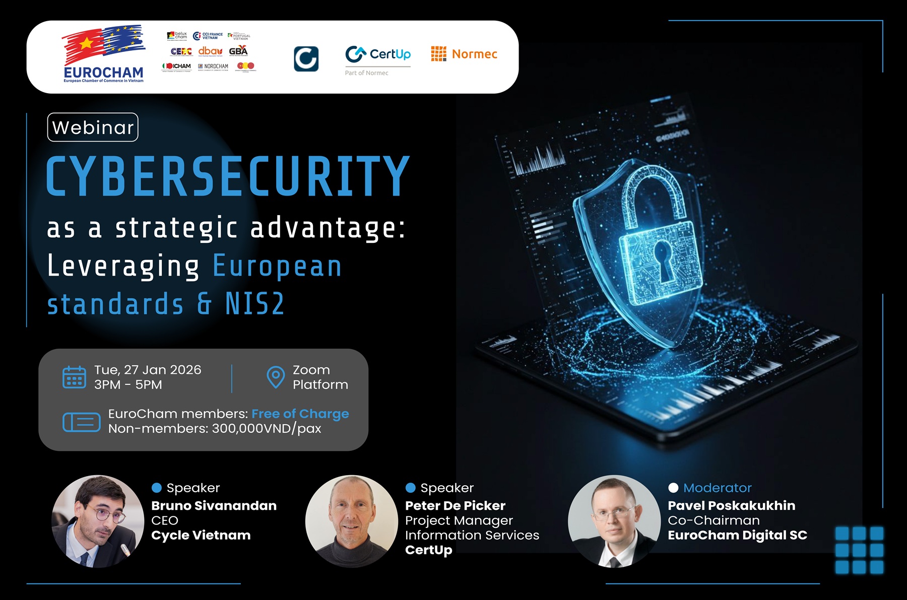 To support members and stakeholders with practical, business-oriented insights, EuroCham Vietnam is pleased to host a webinar titled “Cybersecurity as a Strategic Advantage: NIS2 and European Standards.”